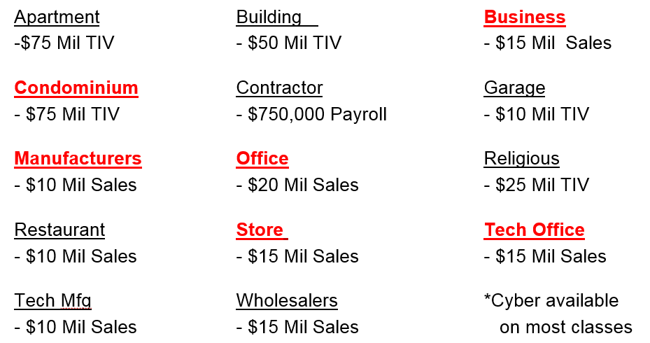 Travelers Select Small Business works well with the following appetites (with maximum annual gross sales):